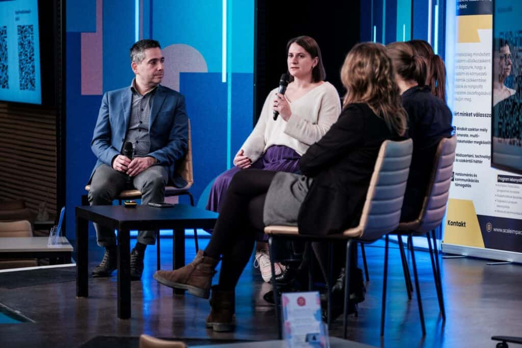 Kovách Eszter szerint a hazai nonprofit szervezetek egyik legnagyobb problémája, hogy nem tudják érdemben mérni, monitorozni a saját működésüket – és vele a társadalmi-környezeti hatásukat. “Nem tudják felmérni, pontosan milyen területeken szorulnak fejlesztésre, ami nagymértékben rontja a hatékonyságukat” – emelte ki. Véleményét Égető Tímea is osztotta. A Simpact szakembere sokáig a forprofit szektorban dolgozott, ahol, mint mondta, “Sokkal keményebb elvárásoknak kellett megfelelnünk, mint a nonprofit közegben.” Az üzleti szcénában szerzett tapasztalatait az impact szervezetek hatásmérésében is igyekszik kamatoztatni. “Aligha van nagyobb érték, mint az, ha rálátunk arra, hogy mik az erősségeink és mik azok a területek, ahol fejlesztésre szorulunk” – hangoztatta.