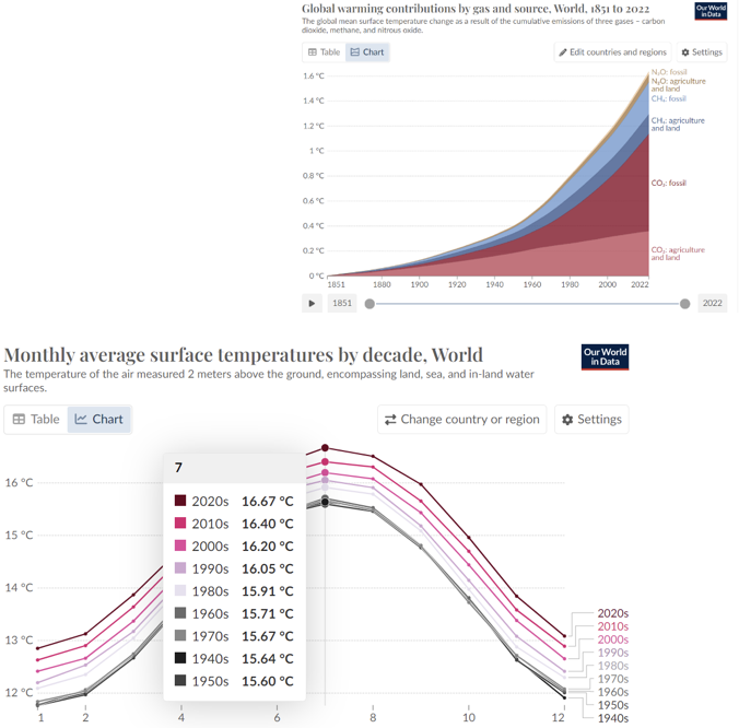 Sajnos látszik, hogy egyre több területen és egyre jobban átlépjük a fenntartható határokat, a klímaváltozás gyorsulása egyértelmű, ami az üvegházhatású gázok növekvő légköri koncentrációjából ered, mivel nem engedik, hogy a bolygó leadja a felgyülemlett hőt. Más ábrák jól szemléltetik, hogy az ipari forradalommal kezdődő folyamat milyen ütemben gyorsul:
