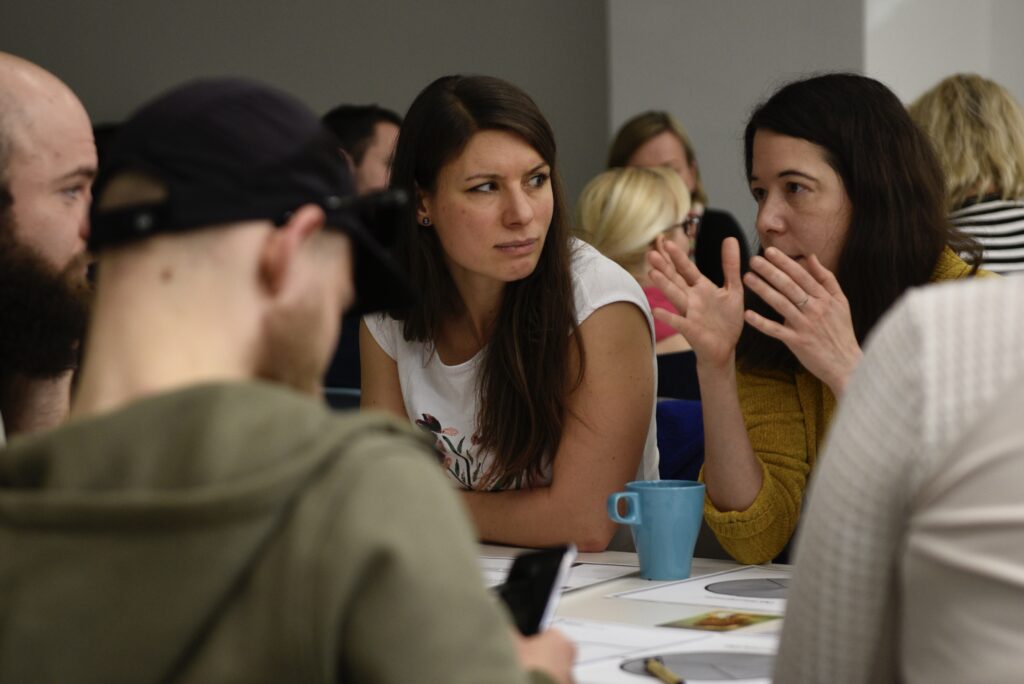 Káli György Klein Péterrel, a Social Design Jam másik társszervezőjével együtt játékos módon, a jelenlevőket is bevonva igyekezett bemutatni a service design előnyeit. A résztvevőket csapatokra osztották: ők azt kapták feladatul, hogy Dixit-kártyák segítségével meghatározzák egy-egy általuk elképzelt termék, szolgáltatás ideális és legkevésbé ideális célközönségét, “perszónáját”. A perszóna-alkotás a service design egyik legfontosabb alapeleme. “Arra használjuk, hogy az aggregált információkat egy-egy karakterbe tömörítsünk: legyen mindenki közös platformon azzal kapcsolatban, hogy kik azok az emberek, akikkel foglalkozunk, milyen »tipikus karakterek« ők” – világította meg a feladat hátterét Káli. Ezután a csapatoknak egy, az előadók által kiosztott template alapján a “jó karakterek” igényeit és a “rossz karakterek” problémáit figyelembe véve kellett optimalizálniuk a termékeiket, szolgáltatásaikat. „Mindez nagyban hozzájárulhat ahhoz, hogy olyan értékajánlatokat fogalmazzanak meg, amelyek lehetővé teszik, hogy megmutassák a potenciális ügyfeleknek, milyen egyedi és kézzelfogható értékeket tudnak teremteni a számukra, és olyan termékeket fejlesszenek, amelyek a valós igényeikre reflektálnak” – magyarázta a szakember.