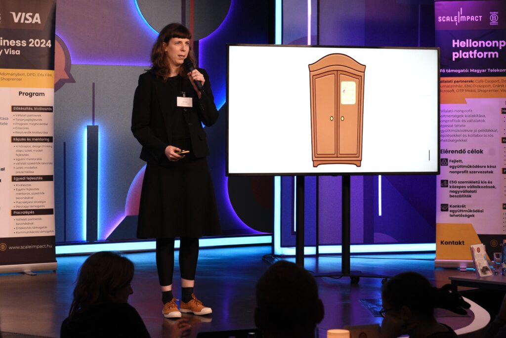 A Scale Impact és a Visa 2024. november 7-én rendezte első Social Business pitch-ét a budapesti Dumaszínházban. A Litkai Gergely moderátorkodásával-műsorvezetésével megtartott, közel háromórás rendezvény rendezvény remek hangulatban zajlott – és nem csak azért, mert a népszerű, a környezetvédelem melletti elkötelezettségéről ismert standupos, humorista szórakoztató, intellektuálisan stimuláló “zöldségeket” beszélt, hanem azért is, mert a két cég féléves fejlesztési programjában résztvevő szervezetek remek, a környezeti és szociális fenntarthatóságot erősítő, újszerű és előremutató ötletekkel rukkoltak elő. A nézőtér zsúfolásig megtelt, a nonprofit szervezetek képviselői mellett a szociális és környezeti fenntarthatósággal foglakozó szakemberek, számos üzletember és befektető is részt vett az eseményen.
