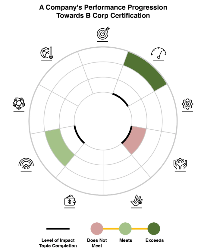 A B Corp mozgalom alapja az az elképzelés, hogy a vállalatoknak „a legjobbnak kell lenniük a világ számára” („Best for the World”), nemcsak üzleti eredményeik, hanem társadalmi és környezeti hatásuk alapján is. A tanúsítás megszerzése során a vállalatokat szigorú kritériumok szerint értékelik az alábbi területeken: